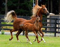 Fuzion has served to improve all of these mares, adding beauty to the Saddlebreds and Half-Arabians and strength and athleticism to the Purebred Arabians. We continually evaluate and rotate our breeding mares to ensure the best possible crosses, and the results, thus far, have been extremely promising. These wonderful mares have helped Fuzion produce three solid foal crops with ample motion, strong hocks and upright necks.