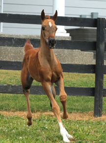 2011 Half-Arabian chestnut gelding out of a National Champion English BSF Electra. A free mover with solid action and a naturally high neckset, this handsome gelding shows considerable promise.