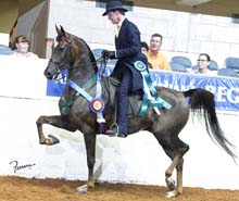 At North By Northwest, we love our English horses. While we appreciate the beauty and foundation offered by outstanding Purebred Arabians, we can't deny that Half-Arabs offer a measure of additional power and excitement. As such, we augmented our breeding program to not only include outstanding Saddlebred and half-Saddlebred mares to be crossed with GSF Pure Fuzion, but also two very special Saddlebred studs.