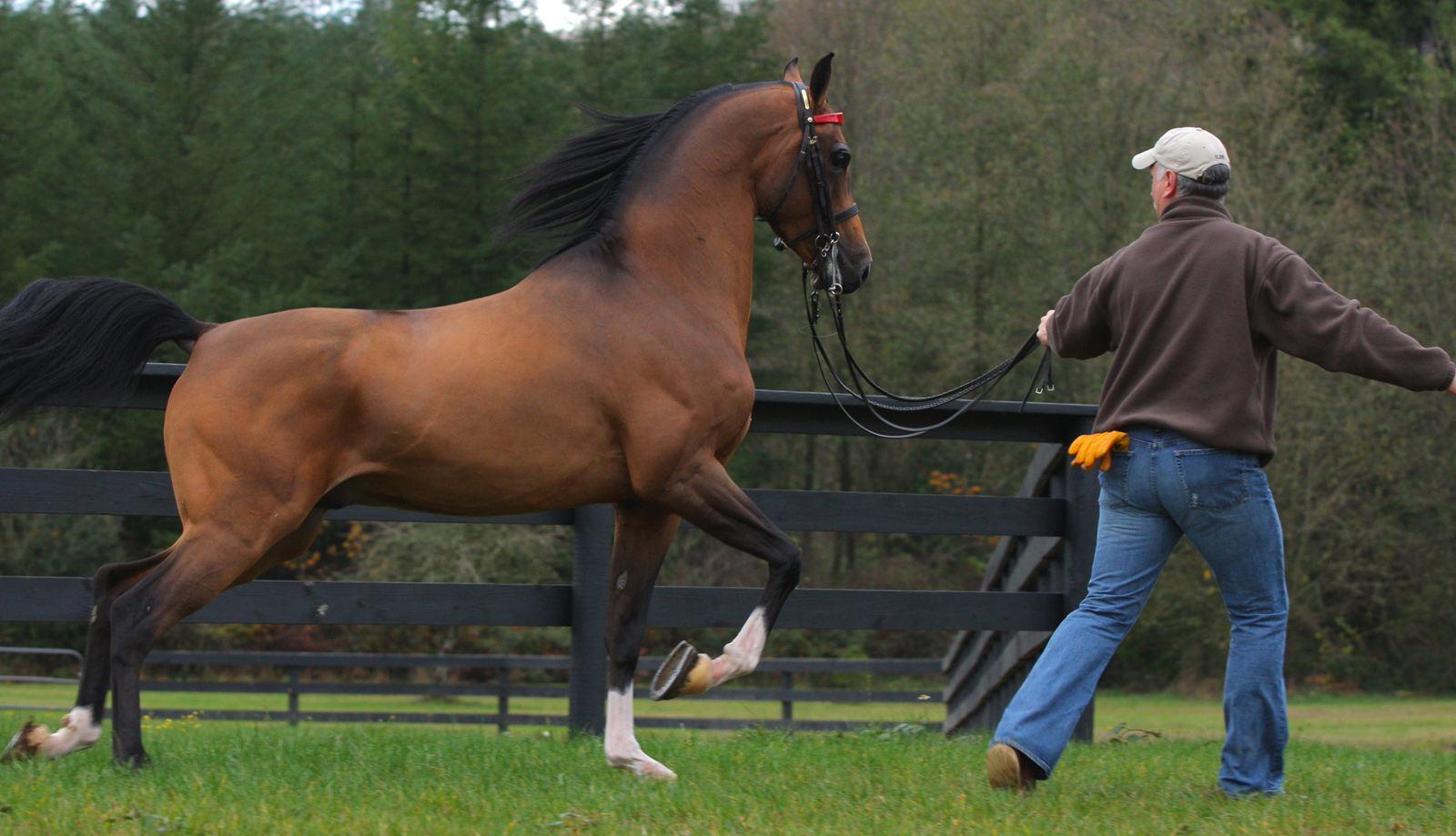 GSF Pure Fuzion, the son of multi-national champion Apollopalooza, represents the foundation of North By Northwest’s breeding program. Before arriving at North By Northwest, Fuzion was hand-selected by Rooker Training as heir apparent to his famous sire. Out of Afire Bey V daughter Primroza Afire (Primroza x Bask Clasix) and line-bred to *Bask, this remarkably talented and beautiful horse displays many of his father’s best attributes.